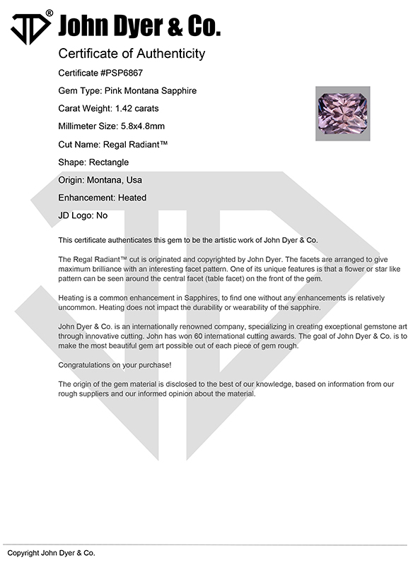 【ジョンダイア】《JDカッティング証明書付》"REGAL RADIANT" JDモンタナサファイア 1.42ct